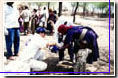 4.After arrived destination, the staffs begin to distribute rescue materials.
